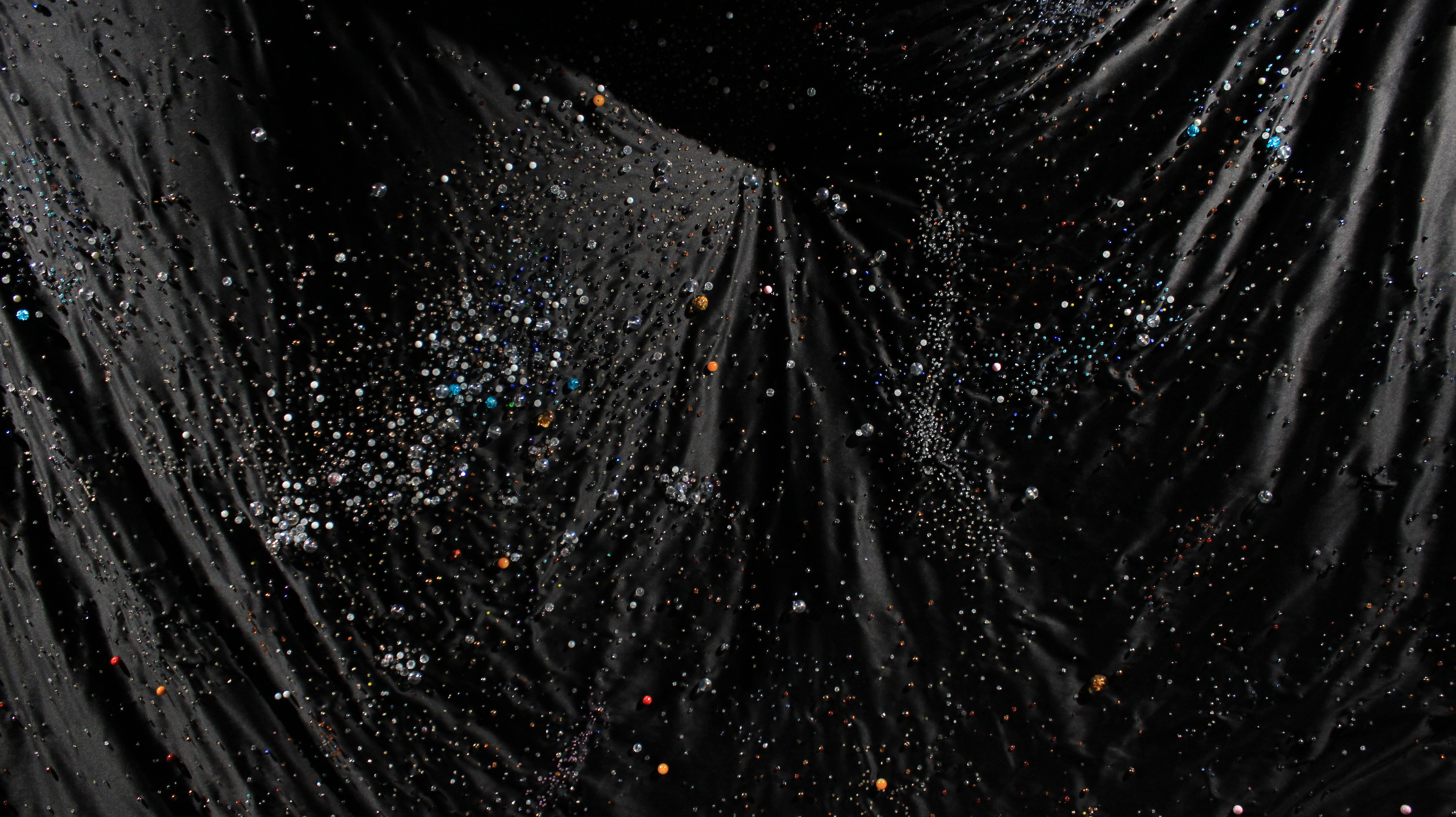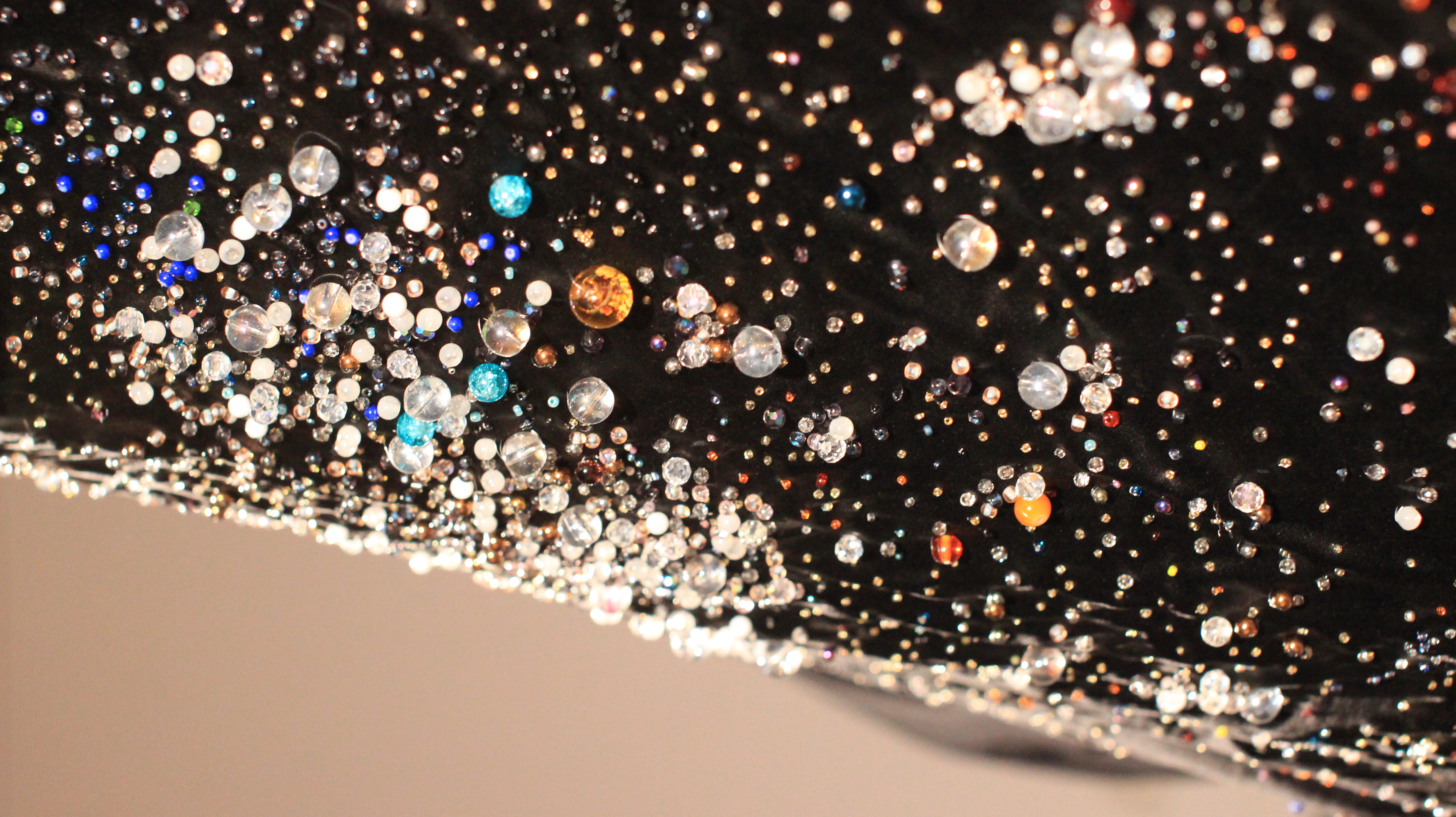 150 x 250 cm, tkanina, koraliki szklane, metalowe, z kamieni półszlachetnych
